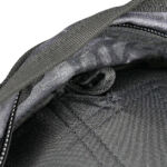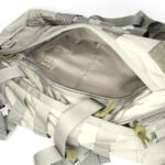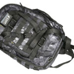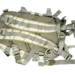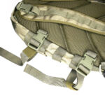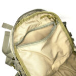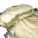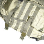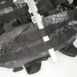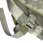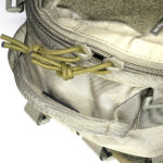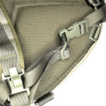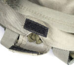 On the front panel I’ve added a MOLLE fixing patch panel to give me more room for velcro patches. There is a torch / flashlight slipped into the webbing to be immediately to hand, but with the top put under the strap above to hopefully stop it falling out by itself.