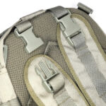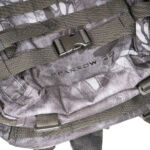The Sparrow 20 steps up the ‘strappage’ to another level. Like the 16, each side has a set of two compression straps with quick release buckles (as well as MOLLE panels). The front panel has a further two compression straps with quick release buckles, and the base of the bag has both MOLLE webbing and a set of four attachment points for webbing of your own configuration. The front panel also has a top opening zip up compartment. It’s all topped off with a sturdy carry strap.
