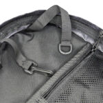 With the extra 4l in space comes a jump in equipment and more organisation. Starting on the front panel is a pocket for very quick and easy access. For the full clamshell opening of the front panel compartment you need to unclip the four side straps. Inside the front compartment is a clip hanger strap and a D-loop hanger strap (for keys and the like), a small organiser panel with pen pockets and elastic strap, a mesh zip up pocket, and an open pouch pocket.